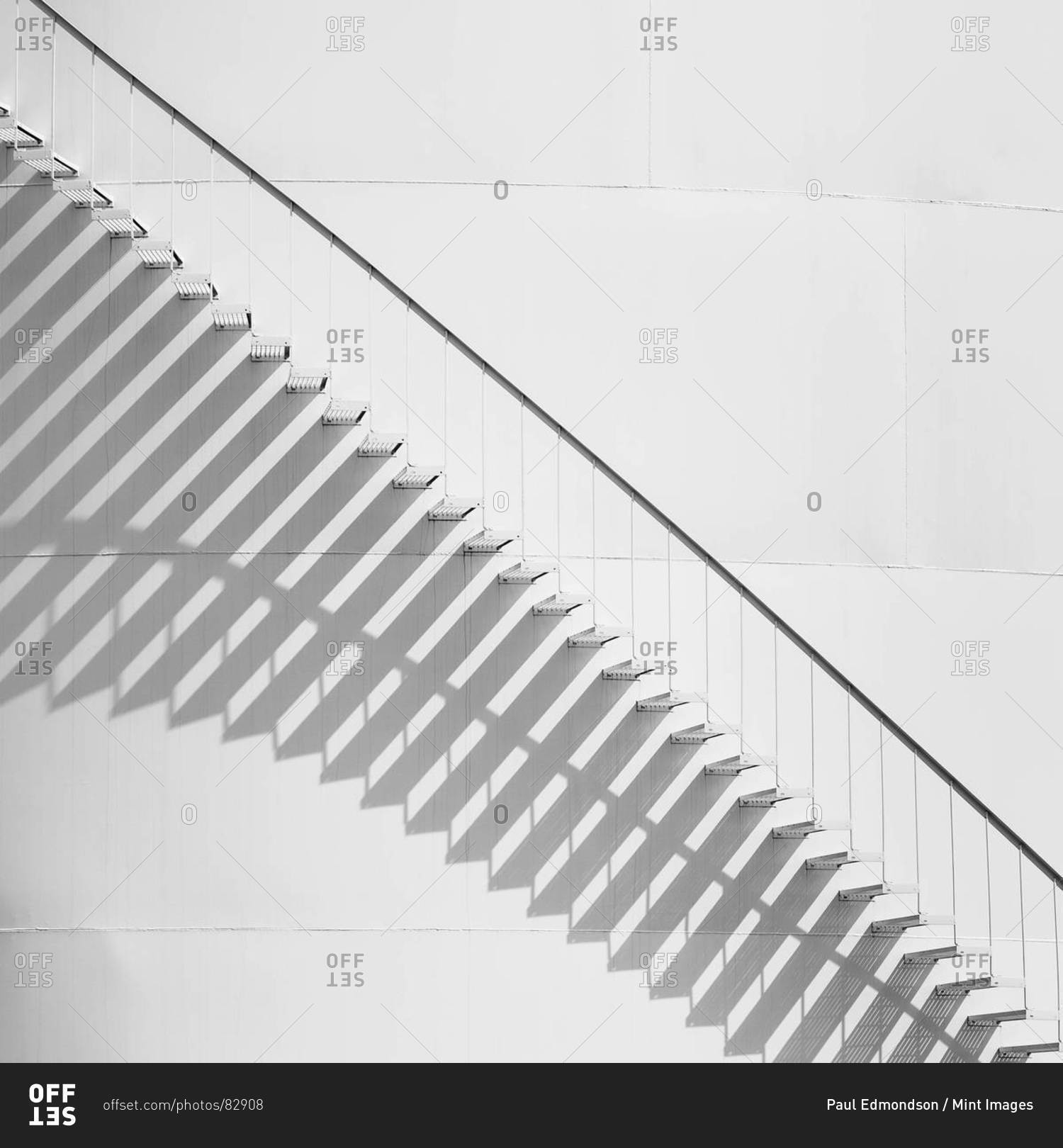 Steps leading up the side of a white storage tank at an oil refinery plant